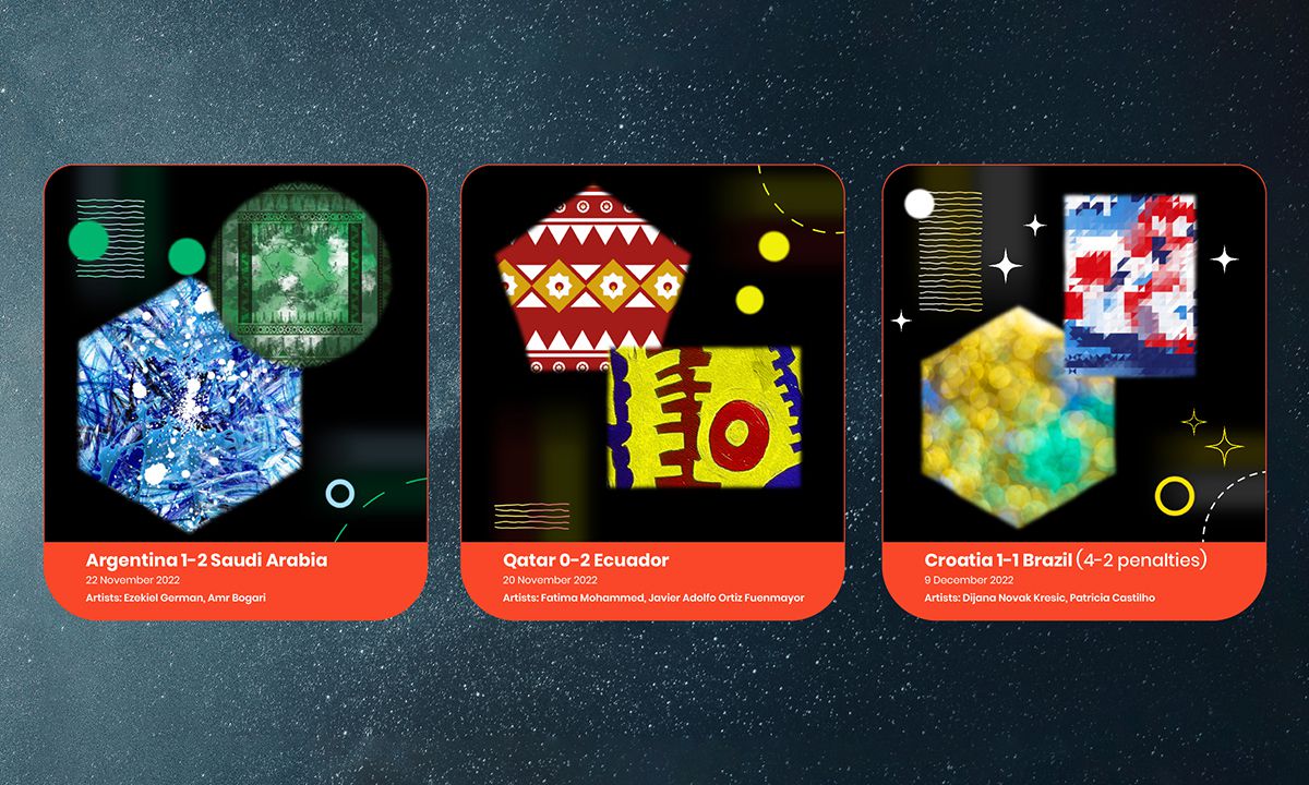 Following each game, an AI-powered algorithm combines statistics on possession, goal, penalty, total number of shots and other match attributes with the artists’ creations to produce 64 pieces of NFT art.